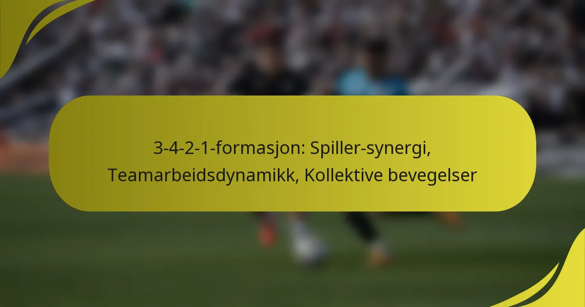 3-4-2-1-formasjonen er en taktisk oppstilling i fotball som balanserer defensiv styrke med angrepsfleksibilitet, med tre forsvarsspillere, fire midtbanespillere og to angripere som støtter en enslig spiss. Denne formasjonen trives på spiller-synergi, der de samarbeidsmessige interaksjonene mellom lagmedlemmene forbedrer ytelsen gjennom effektivt samarbeid og flytende bevegelser. Sterke samarbeid-dynamikker er essensielle, da spillerne må opprettholde posisjonsbevissthet og kommunisere effektivt for å tilpasse seg de skiftende kravene i spillet.